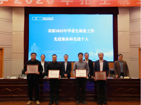 侯北平宣读《浙江科技大学关于表彰2025年毕业生就业工作先进集体和先进个人的通报》。